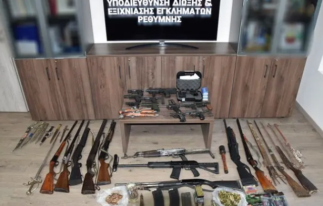ΠΕΝΤΕ ΣΥΛΛΗΨΕΙΣ ΓΙΑ «ΟΠΛΟΣΤΑΣΙΟ» ΣΕ ΣΠΙΤΙΑ ΣΤΟ ΡΕΘΥΜΝΟ - ΒΡΗΚΑΝ ΚΑΛΑΣΝΙΚΟΦ, ΠΙΣΤΟΛΙΑ, ΠΕΡΙΣΤΡΟΦΟ, ΞΙΦΗ ΚΑΙ ΦΥΣΙΓΓΙΑ